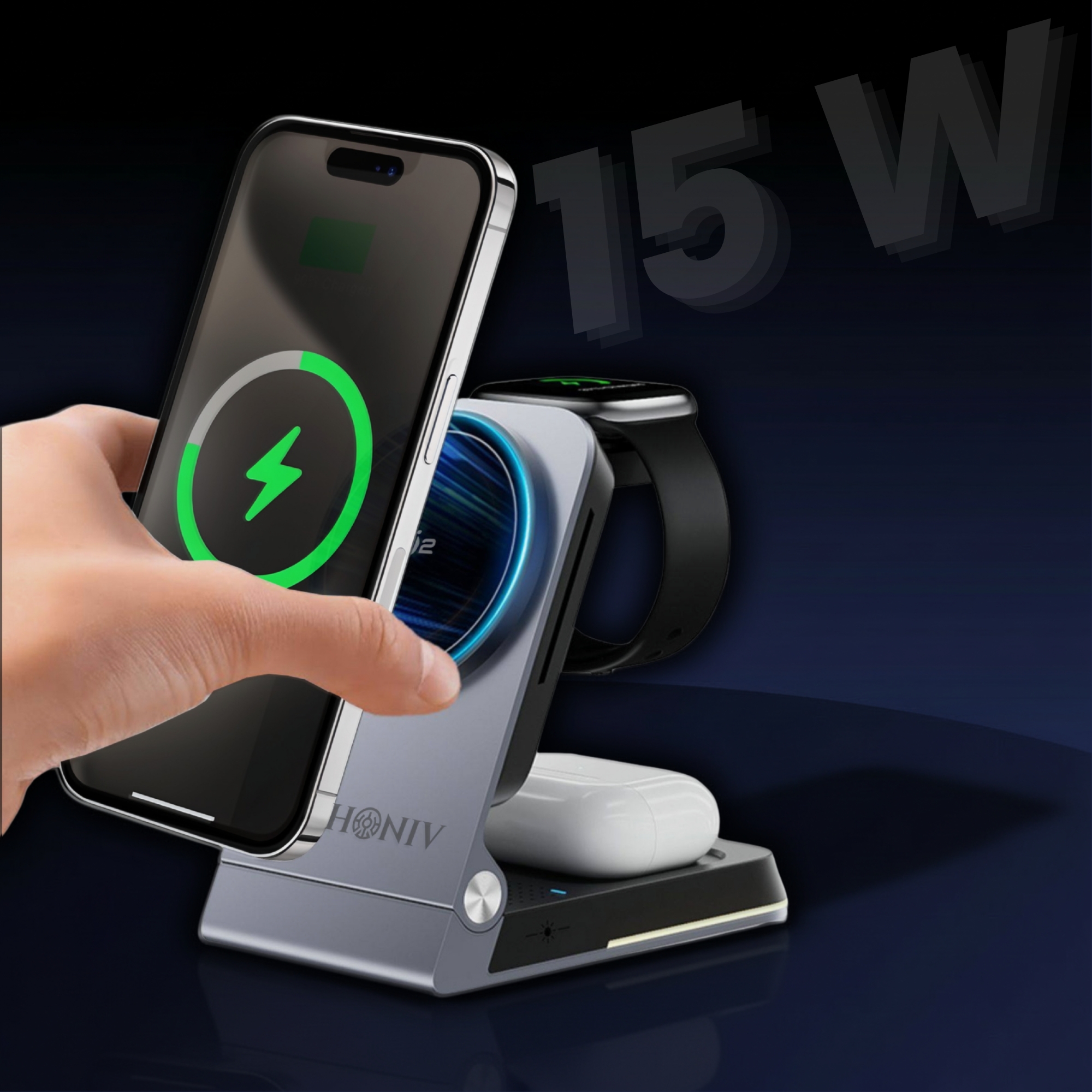 Charge your phone, smartwatch, and earbuds at the same time from one station, reducing clutter and simplifying your space.